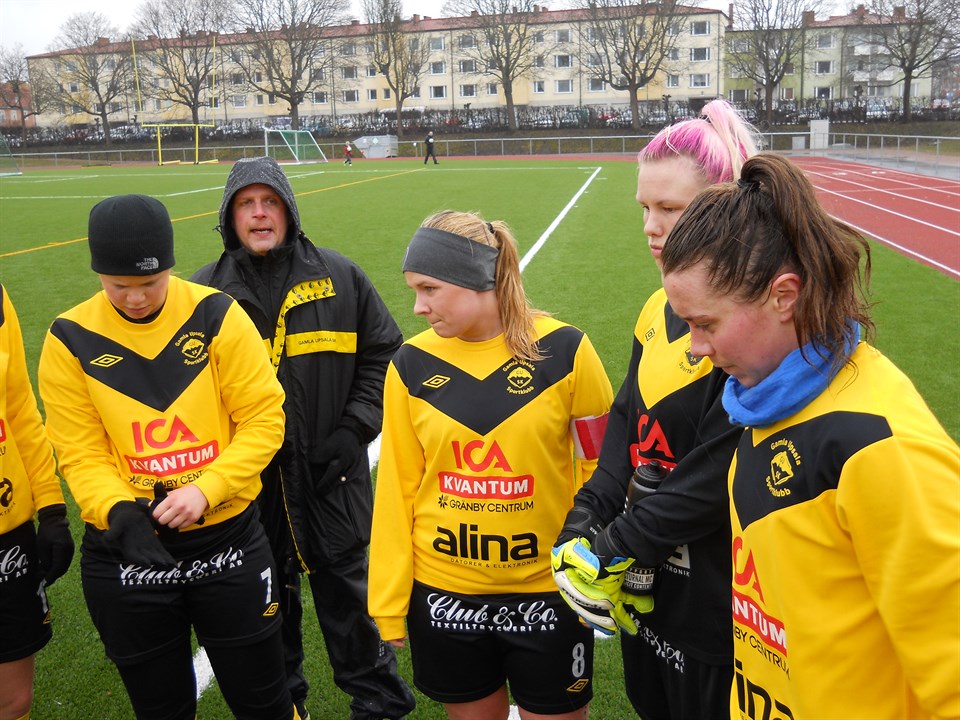 ”I regn och rusk spelar Gusk ” är ju ett gammalt klubbordspråk och i dag så stämde det till fullo för regnet tog ingen paus under hela tiden ,varken före ,under eller efter matchen.Men spelet stämde ändå bra under dagens träningsmatch mot Vaksala.Första kvarten var våran och vi tryckte på bra och det dröjde inte så länge innan Maria G-H drog in ett långskott som målvakten var på men inte kunde hålla. Efter 28 min så satte sen Freddie 2-0.Detta var halvtidsresultatet och vi gick in för att värma oss några minuter. Kaisa fick sätta sig med händerna på elementet eftersom hon frös mycket och inte hade haft så mycket att göra i målet. Andra halvlek var väl 10 minuter gammal när Cornelia gör 3-0 och bara ett par minuter efter så sätter Freddie sitt andra mål till 4-0 efter att han vänt och vridit på hela Vaksala försvaret.Sen reducerar Vaksala i 65:e till 4-1.Vi har många genomlöpningar under hela halvleken och i 80:e min så kommer Freddie i en jättelöpning mellan backen och målvakten och snor bollen och gör inget misstag utan gör Hat tric med sitt för dagen 3:e mål så att slutresultatet blir 5-1.Vi gör en bra insats idag med tanke på det kalla vädret och ihållande regnet. Spelade idag gjorde Kaisa , Hanna S,Sofia Å,Victoria W,Emma L,Fredrika K,Maria G-H,Elva F,Johanna H ,Maria O,Lisa N , Cornelia B ,Maja H , Clara W och unga Ebba Sandgren som gjorde debut i div 2 laget med den äran. Jag lägger ut några bilder i albumet också från matchen /Tobbe