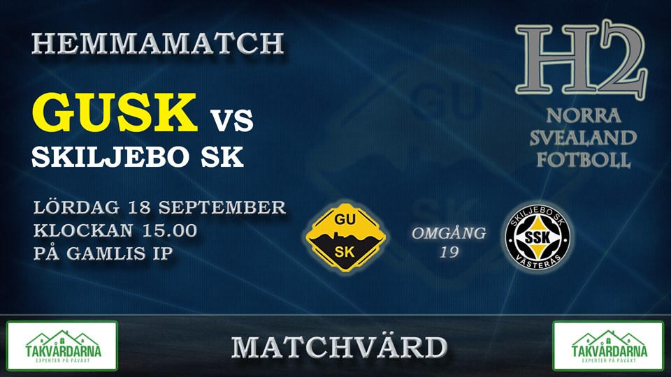 Så återstår det 10 matcher av årets seriespel för oss. Match nummer 19 spelas på lördag mot Skiljebo SK som just nu ligger fyra i den haltande tabellen med 29 poäng. Vårt läge i tabellen, precis ovanför nedflyttningssträcket, gör att tre poäng på lördag vore kanon, så kom och stöd oss, tack! Matchen spelas på Gamlis IP och börjar 15.00. Entréavgiften är 80 kr och Swishkontot är 123 023 03 59. Vi och matchvärden Takvårdarna Mellansverige AB hälsar motståndarna, domare och publik välkomna! Herrfotbollen