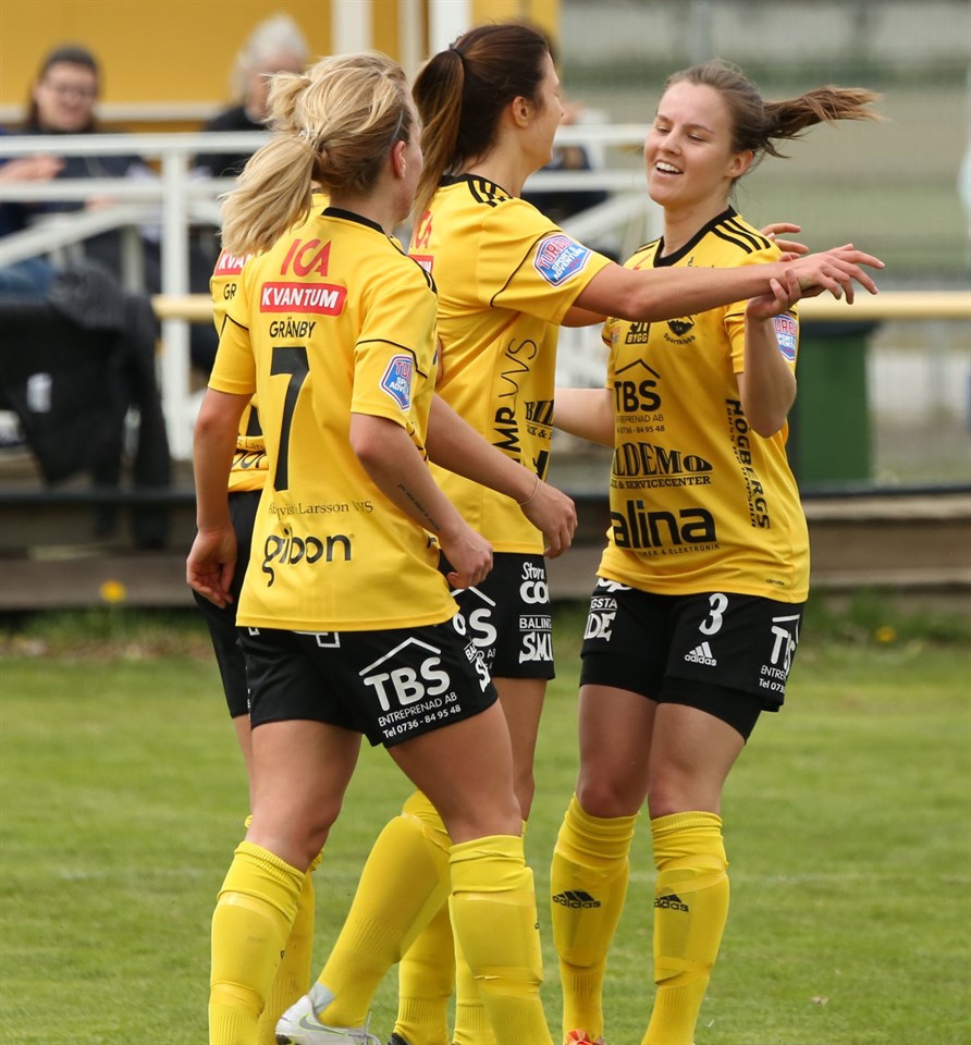 I Lördags skulle Damerna ta emot Västerås BK30 i den riktiga hemmapremiären på Gamlis IP vilket efter 90+ skulle sluta i seger med 4-2. Gusk som i dom senaste hemmamatcher har startat starkt med tidiga mål skulle få en drömstart även i denna. 1-0 Skulle komma redan i den 4 minuten när Emmali Nordengrim spelar fram Josefine Stomberg som på egen retur kan lägga in bollen i öppet mål. 2-0 skulle komma på en fast situation i den 18:e matchminuten och en fint slagen frispark av Maja Andersson som hittar Elva Fridjonsdottir på bortre stolpen och kan sätta bollen i nät med huvudet. Gusk trycker på och gör det svårt för BK30 att komma till några direkta chanser samtidigt som man visar upp en oerhört farlig offensiv. 3-0 kommer i den 23 minuten efter ett fint inlägg som Sanna Öhlund når högst på och gör sitt 6:e mål för säsongen. BK30 skulle få in ett mål innan pausvilan och Gusk kan gå till halvlek med ledning 3-1. Andra halvlek startar och Gusk skapar chans direkt men utan resultat denna gång. matchen står och väger samtidigt som BK30 fick energi för sitt sena mål i första halvlek och skapar chanser men Kaisa och försvaret står emot bra fram till den 63 matchminuten när motståndarna får in 3-2. Gusk försvarar sin ledning och BK30 kommer inte till några speciella chanser. I matchminut 92 skulle Julia Wänglund sätta spiken i kistan med ett skott från halva halvplan som målvakten inte hinner tillbaka på och 4-2 blir även slutresultatet. Tack till alla som tog sig dit och stötta oss till ytterligare en seger! Vi ses på nästa hemmamatch! Nästa hemmamatch Datum: 25/5 Klockan: 14:00 Motstånd: Sollentuna