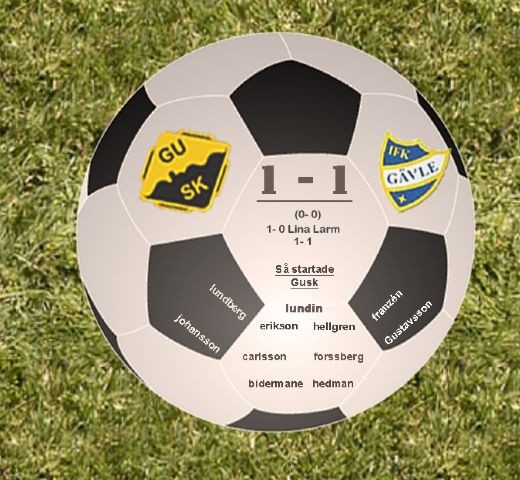I dagens träningsmatch spelar Guskdam oavgjort mot IFK Gävle, 1-1 (0-0). Vi genomför matchen på ett bra sätt och följer vår matchplan. Lina Larm ännu en ny målskytt för Guskdam. Guskdam genomför en bra träningsmatch på Årsta, första halvlek slutar 0-0 efter ett bra försvarsspel av laget. Anfallsspelet blev lite lidande med tanke på den hårda vinden vid Årsta. - Våra lagdelar var kompakta och gjorde det svårt för kamraterna från Gävle att skapa målchanser. Elin Lundin var aktiv och tog hand om de bollar som lyftes in bakom vår backlinje. En stor skillnad i dagens match jämfört med tidigare matcher är att vi jobbar som ett lag och tar ansvar, vågar jobba hårt och som skapar problem för motståndarna. Gusk startade matchen på följande sätt. Elin Lundin- Josefine Franzén, Emelie Hellgren, Linnéa Eriksson, Melinda Lundberg- Angelica Gustavsson, My Carlsson, Jenny Forssberg, Ida Johansson- Olivia Hedman och Ieva Bidermane. I den andra halvleken görs några byten och positionsförändringar. Avbytarna Linnea Norberg, Elin Lindström, Heidur Loftsdottir och Lina Larm byttes in i andra halvlek. Sist nämnda Lina Larm gjorde ledningsmålet för Gusk genom ett fint skott i bortre stolpen. - Det var en rolig match mot ett bra motstånd, vi tar verkligen flera steg framåt och med känns riktigt bra! I dagens matchtrupp är det nio nya spelare och vi behöver mer tid för att allt skall sitta. I den andra halvleken tar Gävle över spelet mer och vi tappar positionerna. Kvitteringen kommer rättvist. Ett fint inlägg som nickas in vid den bortre stolpen, ett fint kvalificerat mål som vi inte kan göra något emot. I slutet av matchen har båda lagen fina möjlighet att göra ett vinnande mål. Helhetsmässigt är vi nöjda med prestationen, vi följer vår plan och gör ett bra arbete. Mycket roligt då vi är många nya och det tar tid att spela ihop laget. Det blir bara bättre och bättre, så vi kommer vara redo och laddade då serien drar ingång den 28 april mot just IFK Gävle. Nyförvärvet Ieva Bidermane debuterade för Gusk och gjorde en mycket bra match. //