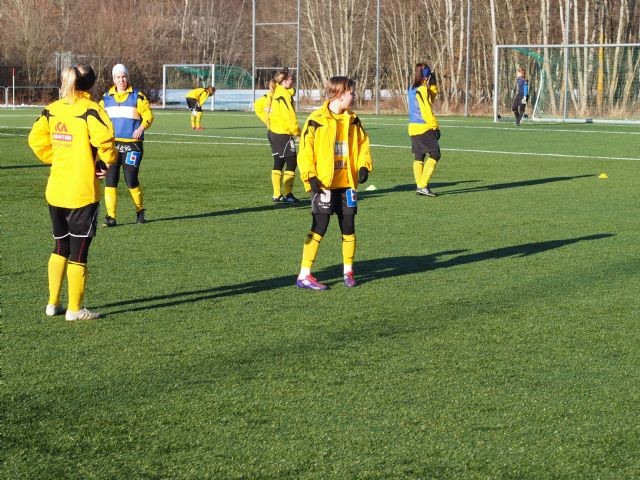 På en kall och blåsig kväll på Lötens KG. Spelet under måndagens träning var mycket bra- många spelalternativ för bollhållaren, bra rörelse och bra tempo.. gött! Ett annat glädjeämne under denna kalla kväll var att Elin Lindström var tillbaka igen i träning- riktigt roligt! Nu är det vila på tisdag, Upplandscupen för herrarna. Nästa aktivitet är på onsdag då Peter ansvarar för fyspasset i Domarrngen. Nästa bollpass är på torsdag 19.30 på Årsta KG, samling 19.15. Gött, och snart kommer även värmen till Uppsala, då rullar bollen ännu snabbare.. På torsdag kommer Jenny Forssberg att informera om lagaktivitet- viktigt att vi kan få till detta under april månad, efter påskhelgen är ett bra förslag. Om ca 39 dagar - då gästar IFK Gävle Gamlis IP! //