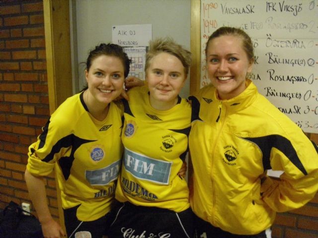 Vi fick lite mer sovmorgon denna andra dag i Rimbocupen och vår första match av 4 matcher började inte förrän Kl 11.20 och för motståndet stod Gimo. Det blev en tight tillställning där lagen tog ut varandra och ingen ville släppa till något men tyvärr för oss så fick Gimo in ett mål efter 13 min och vinner matchen. Våra nästa motståndare var Sunnersta och vi satte fullt tryck från början och hade massvis med chanser utan att lyckas sätta dit något mål.Helena prickade stolpen med en mörsare och vi sköt stolpe målvakt ut mm men inget gick vår väg och trots att vi borde vunnit med en 3,4 mål så det slutade matchen 0-0. Det här var ingen bra början så vi förstod ju att vi måste vinna dom 2 kvarvarande för att gå vidare.Det var bara en match emellan innan vi skulle ut igen och skulle möta AIK som hittills vunnit alla sina matcher och såg spelmässigt väldigt bra ut. Efter bara en minut så kom Melle ensam mot AIKs målvakt och satte 1-0 till oss och sedan dröjde det till 13:e minuten innan My gör 2-0 och vi har bra koll på matchen men AIK gör 2-1 med minuten kvar och det blir lite stressigt den sista minuten men 2-1 står sig matchen ut. Nu är vi med igen och i sista matchen möter vi Östervåla. Även i denna match får vi en bra start Olivia drar in 1-0 efter en minut och det står sig till 9:e minuten då det blir 1-1 men efter drygt 10 min så lirkar My in 2-1 till oss och efter 12,5 sätter Helena turneringens snyggaste mål en superkanon i vänster kryss.Sen i sista minuten får Östervåla en straff som dom gör mål på så 3-2 slutar matchen. Nu skulle det bli spännande AIK och Gimo skulle mötas i sista omgången och förutsättningarna var att om Gimo vann så gick vi vidare eller om AIK vann med mer än 1 mål så var vi också vidare. Det såg väldigt bra ut AIK gjorde både 1,2,3 och 4-0 och allt såg lugnt ut men den som regisserade den här föreställningen kan nog få ett jobb i Hollywood för efter 10 min kom 4-1 och sen minuten efter 4-2 och detta höll sig till det var ca 5 sekunder kvar av matchen när Gimo får in även 4-3 målet som gör att vi därmed hamnar på exakt samma målskillnad men i och med dessa 3 mål så har dom mer gjorda mål vilket fäller avgörandet till deras fördel. Så vi får besvikna åka hem trots att vi ändå gjort en bra turnering och att missa slutspelet med 5 sekunder känns ju trist.Elin i målet fyllde också 20 år i dag så hon fick gratulationer och bjöd själv på lite godbitar Dom som spelade turneringen var Elin,Melle,Emelie,Helena,Sandra,Olivia,My,Angelica,Frazze,Lina och Sabina.Vårt nyförvärv Jenny Forssberg hade tyvärr fått väldigt ont i halsen och kände redan på uppvärmningen att hon tyvärr måste avstå spel men hon var med och hjälpte till med runtomkringjobbet i stället.OBS Jag har även lagt in en mapp med bilder i Fotoalbumet under "Rimbo cupen 2012" om det är någon som vill kolla Tobbe
