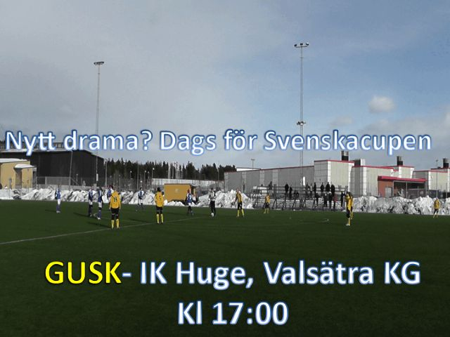 På Valsätra konstgräs avgörs omgång 2 i Svenskacupen, då tar GUSK emot IK Huge. Matchstart är 17:00 och truppen samlas på 15:15 i klubblokalen. Vägen till omgång 2 för bägge lagen. - GUSK besegrade division tre laget Moheds SK, Söderhamn med 3-2, 2-2 efter fulltid. - IK Huge besegrade division två laget IF Team Hudik med 3-0. Följande 16 spelare är uttagna till denna kamp. Johanna Degerman Maria Granat Hamberg Nathalie Larsson Emelie Hellgren Elin Lindström Sofia Mattsson Amanda Falck Elin Mattsson Emma Åkerman Marija Banusic Frida Noren Ida Johansson Alexandra Annerklev Sofia Nilsson Moa Karlström Erika Pettersson Värt att notera är - att Marija Banusic gör debut i tävlingssammanhang för Gamla Upsala. - att Moa Karlström får chansen att visa upp sig igen. - att Erika Pettersson återigen är uttagen till spel i Svenskacupen för GUSK. - att Sofia Nilsson är på gång igen efter sin skada. - att det finns en känsla att Nathalie återigen blir målskytt //